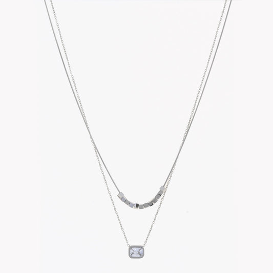 Colar duplo pedra retangular